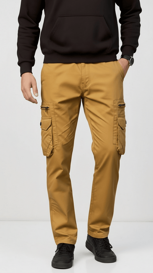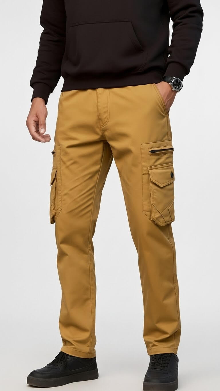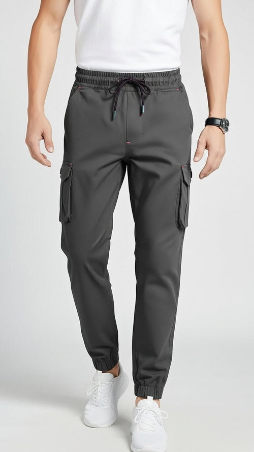 Men’s Relaxed Fit Cargo Denim Joggers with Drawstring Waist – Dark Indigo
